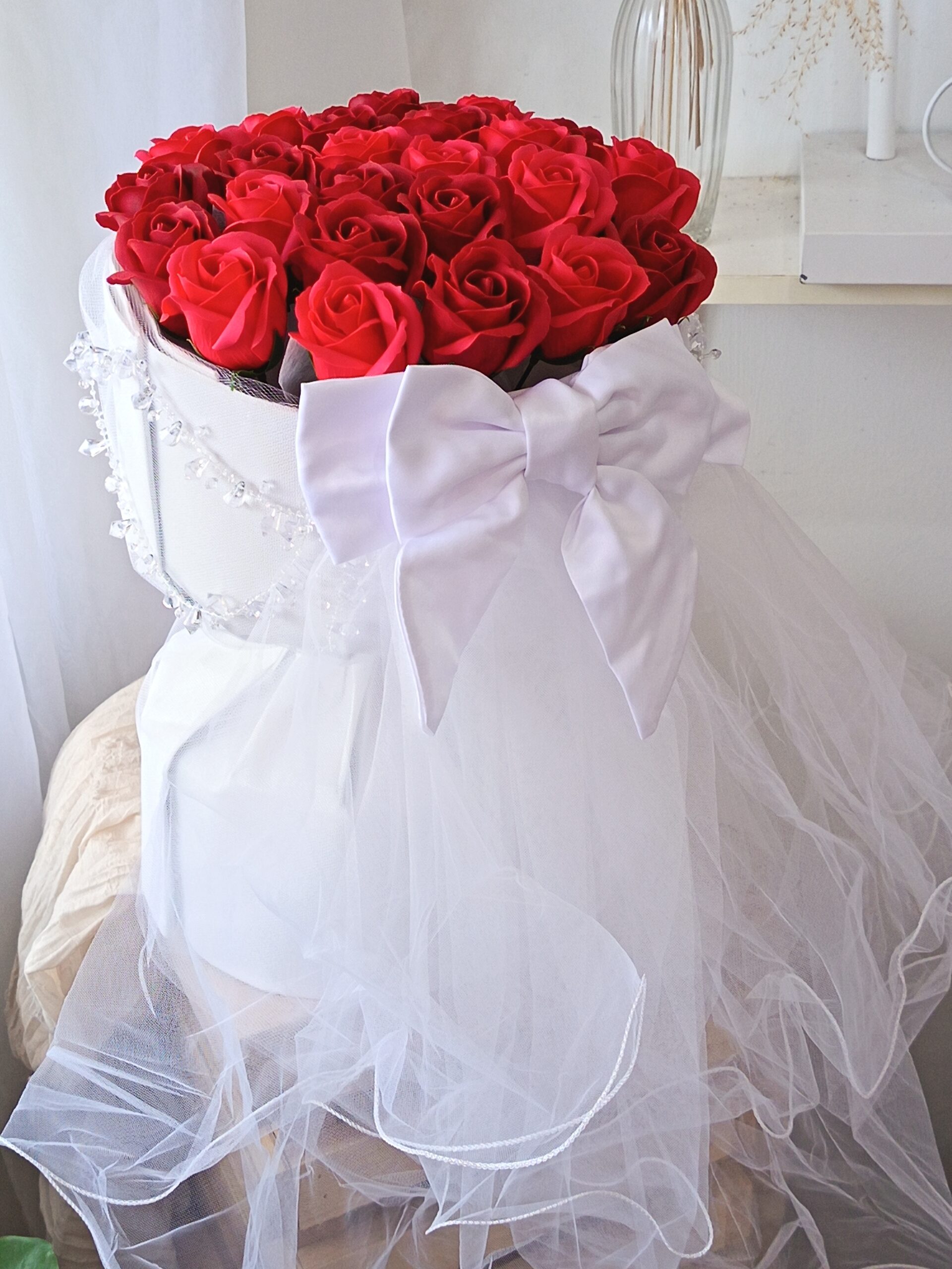 *Soap flowers are made with 100% soap ingredients and have a subtle soap scent. They are artificial flowers so they will last forever. Soap flowers come in many different colours, shapes, and sizes that cannot be recreated with real flowers, and have no risk of shattering or tearing, making them ideal for intricate arrangements.