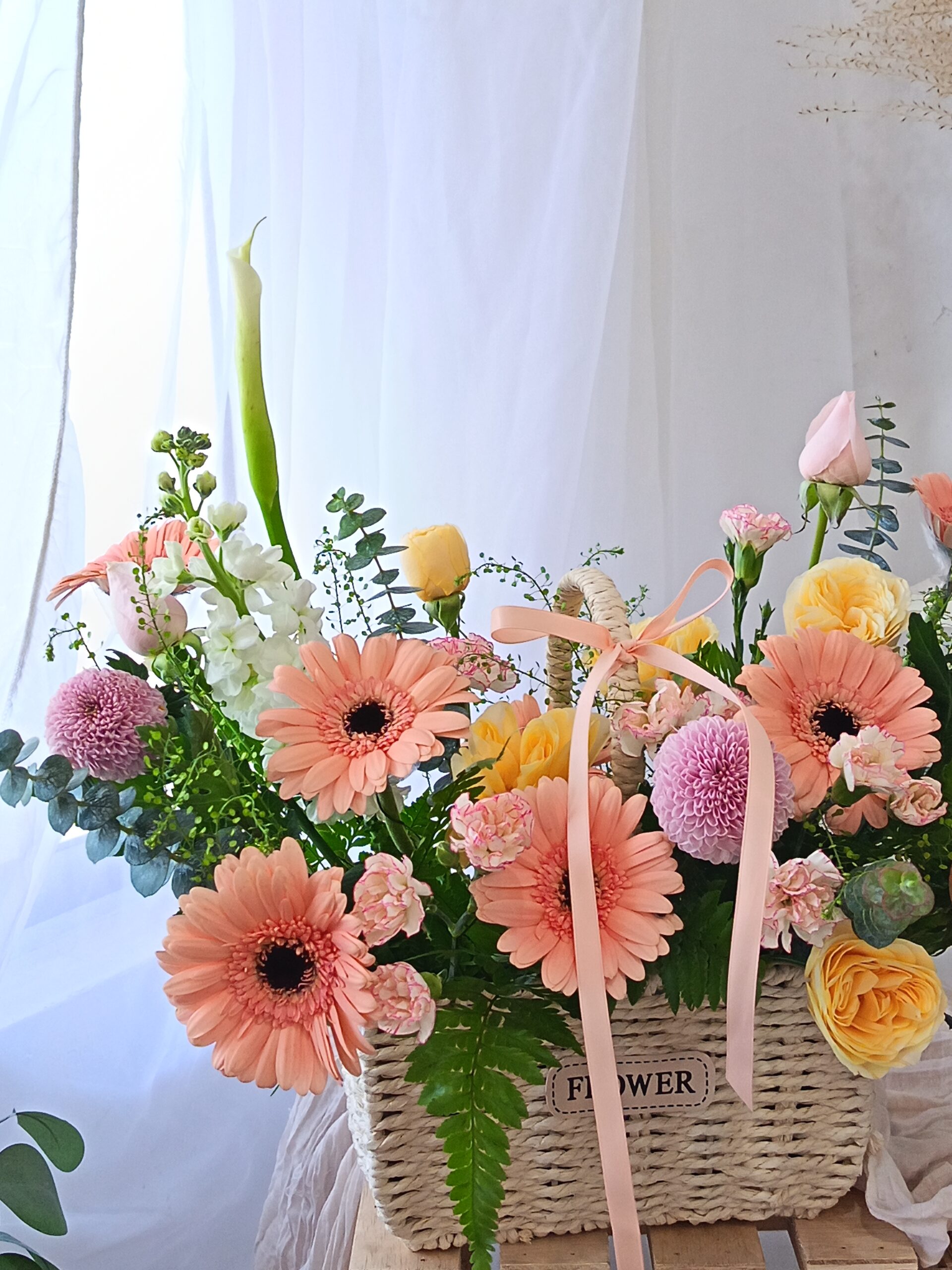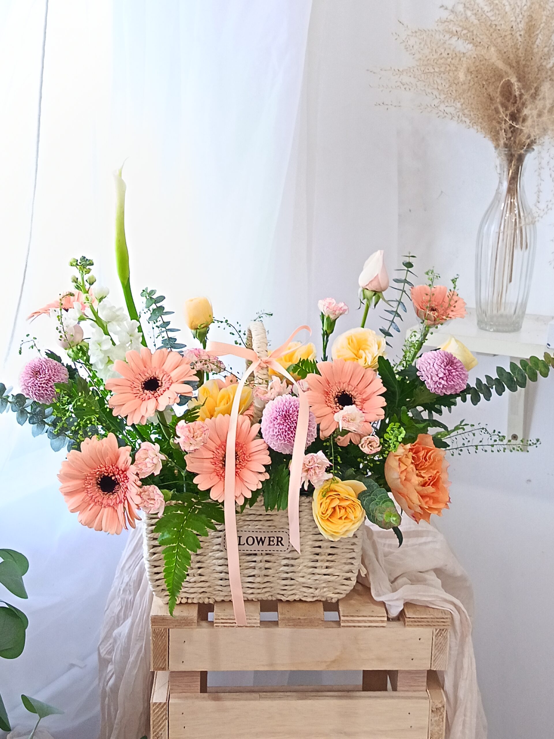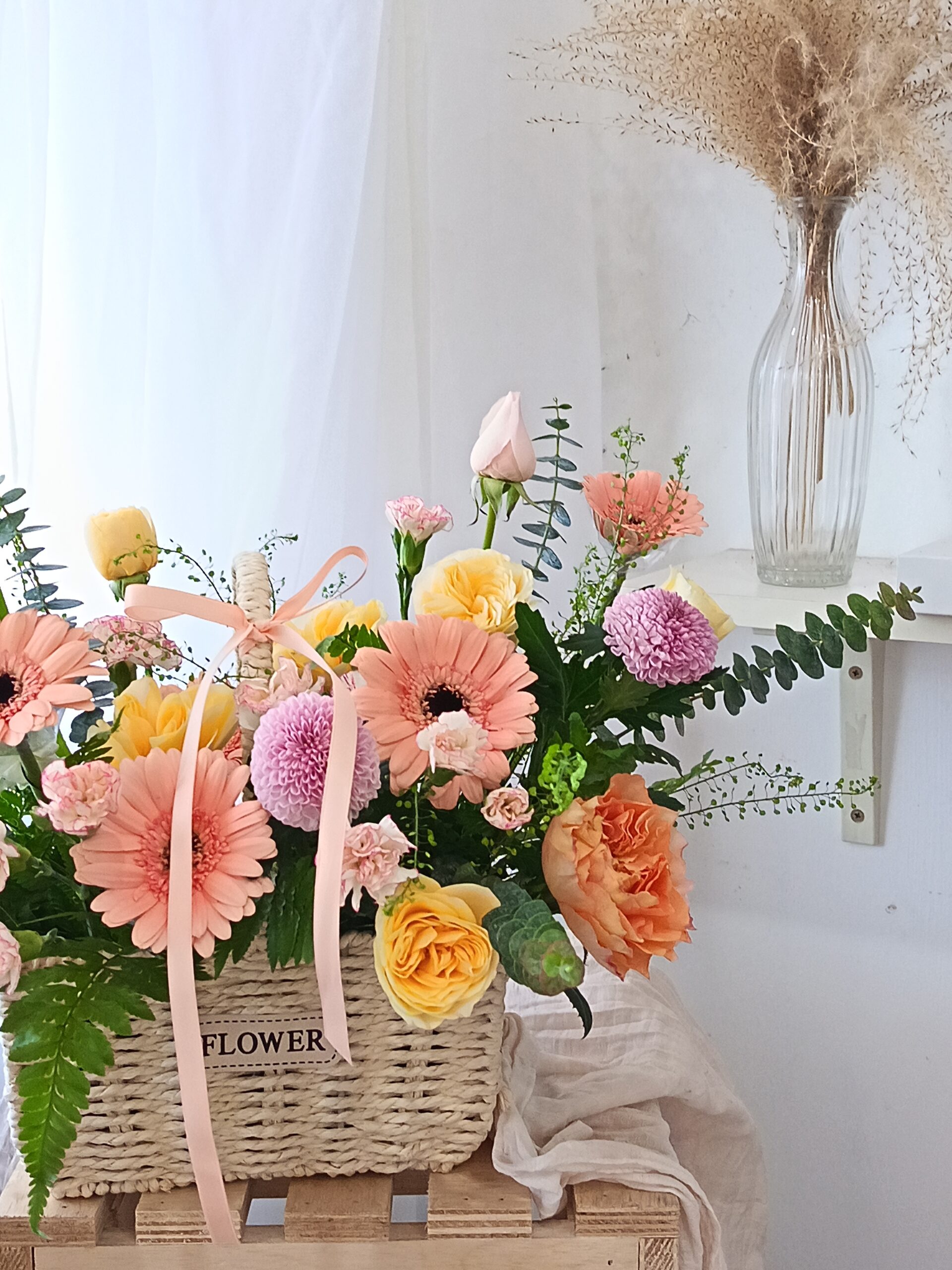 Type of flower & colour may vary depending on availability. Similarly flowers (or available colour) will be replaced in the event that certain flowers or colour are not available; with equal value while maintaining the overall look and feel of the arrangement. Photo displayed is for reference purpose.